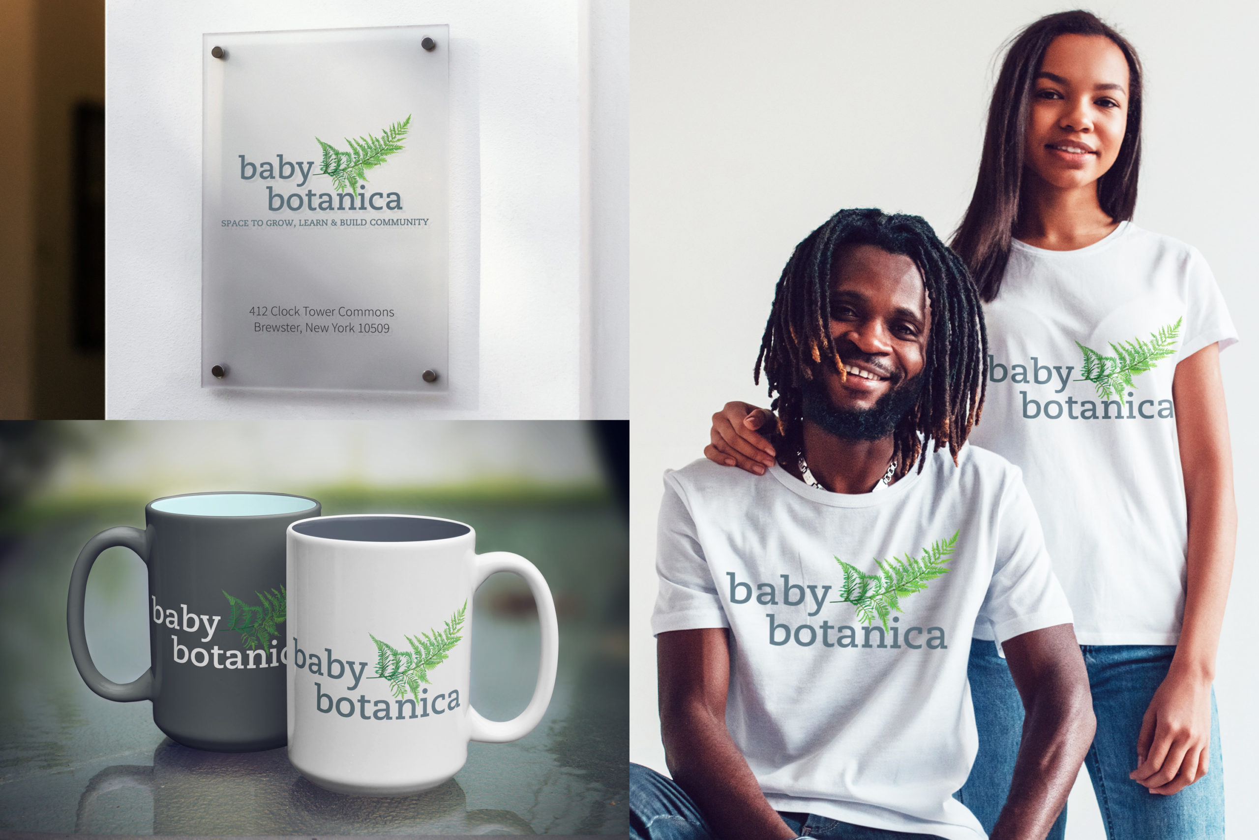 Every brand begins somewhere, in the case of Baby Botanica, it began with a visual expression, suggested by the client, the name Baby Botanica and a fern, symbolizing freshness and new life. We hit the ground running and designed a lowercase logo, a luscious, and vibrant fern graphic on a cool grey background to give the brand a strong and recognizable look. At the same time, messaging content was written, and wayfinding signage was developed for the location in Brewster, NY.