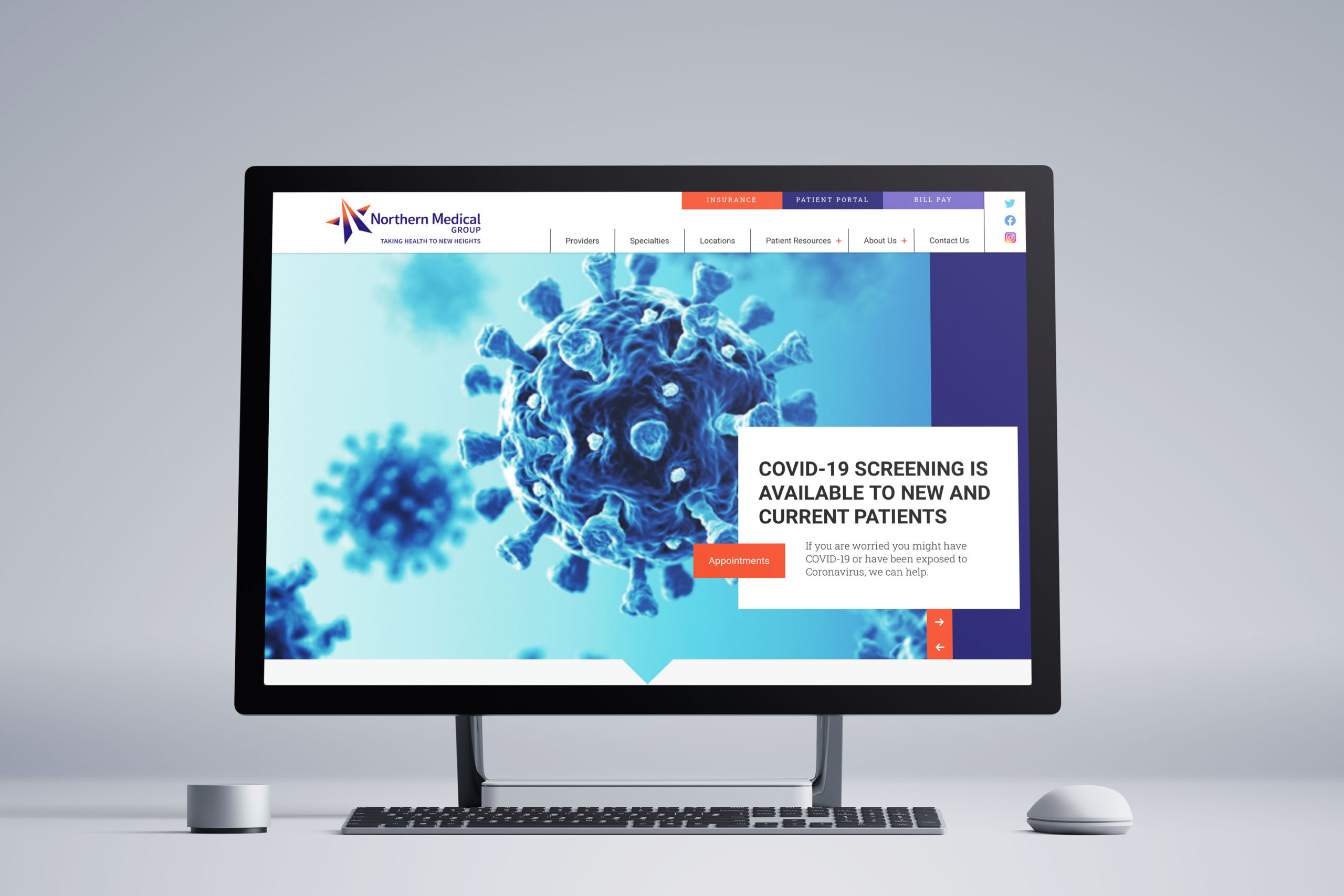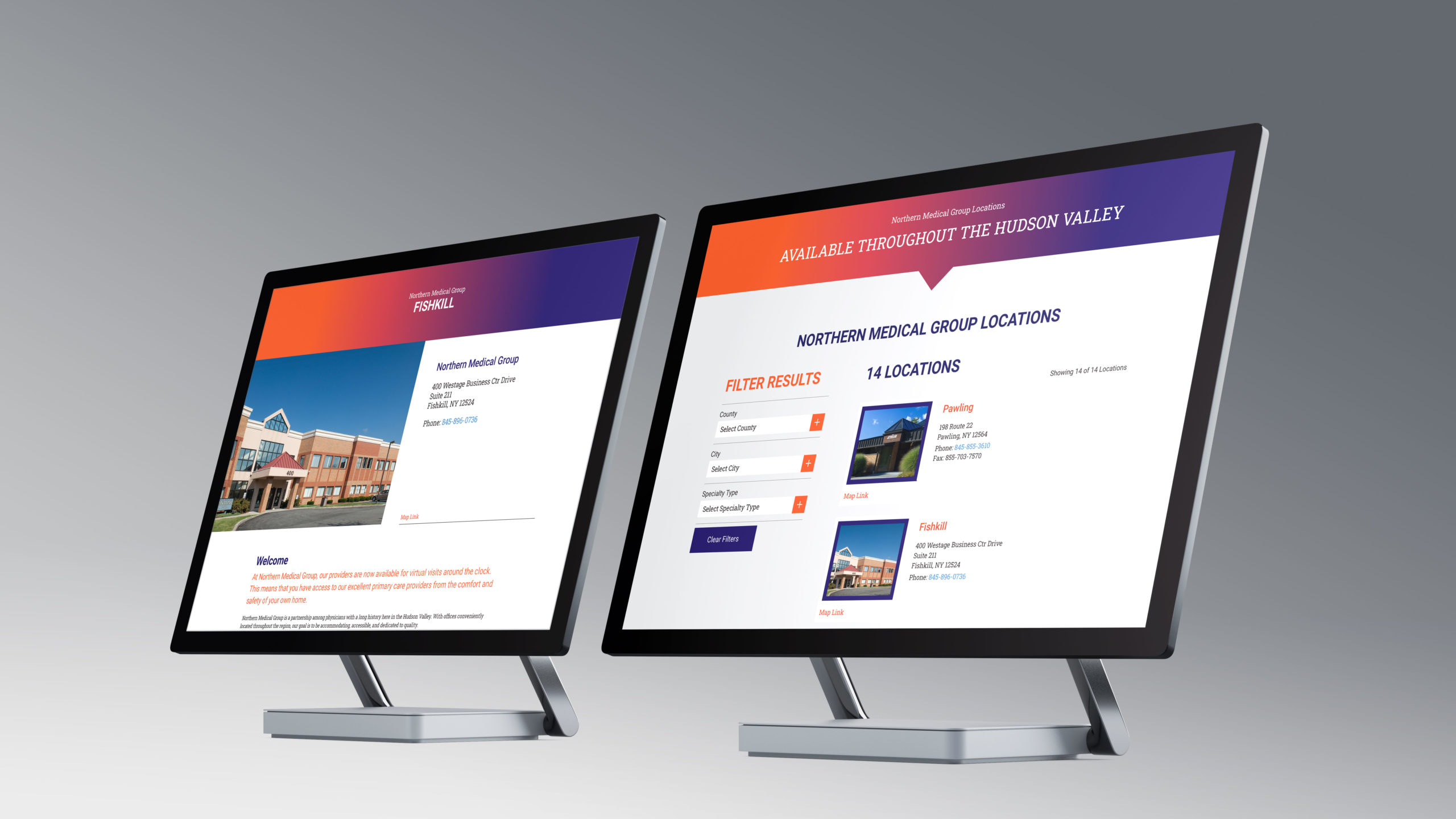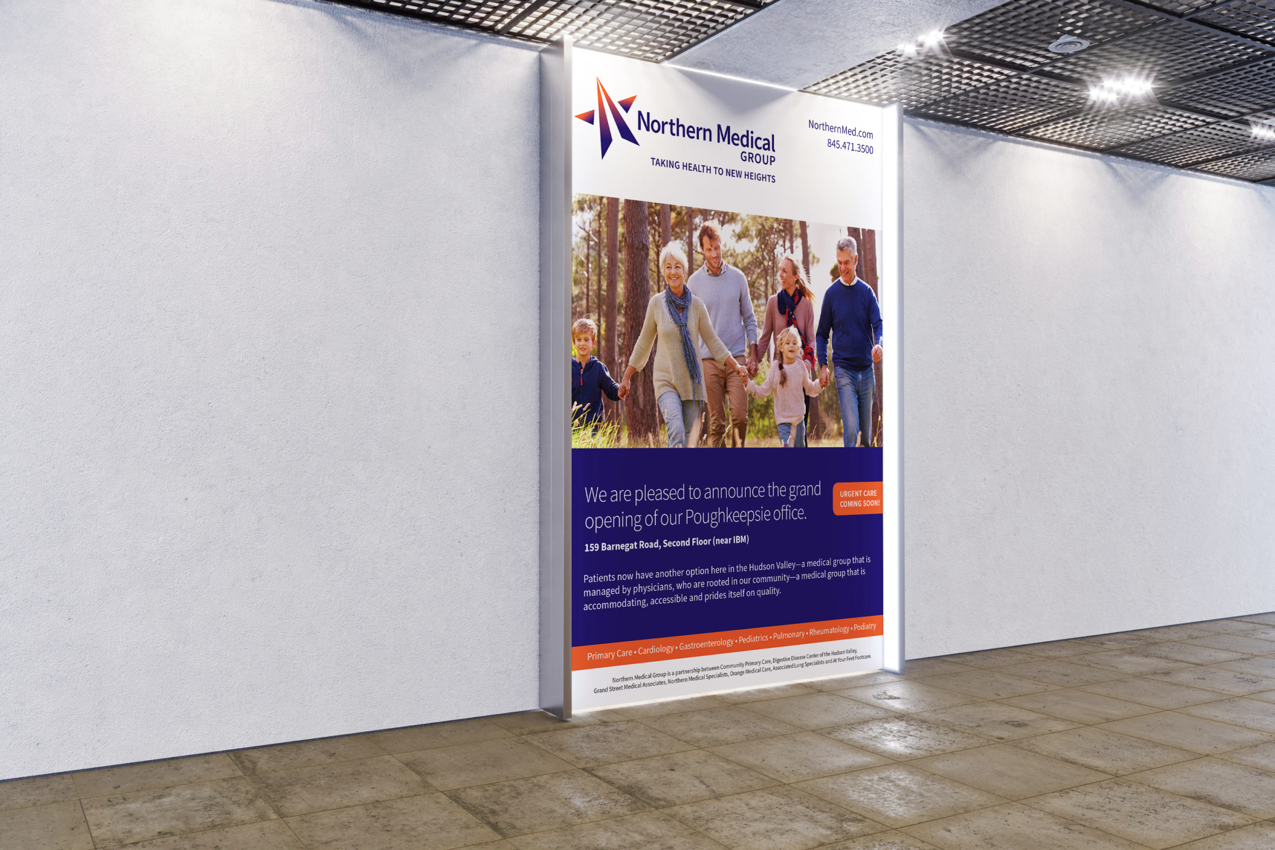 In an era when consolidation of healthcare medical practices can make it hard to distinguish one from another, a strong brand is essential to build patient loyalty. In the case of Northern Medical Group, Ashworth used the strong purple and orange color ways to draw the eye to all communications from business cards to out of home installations and, especially, on the organization’s new website.