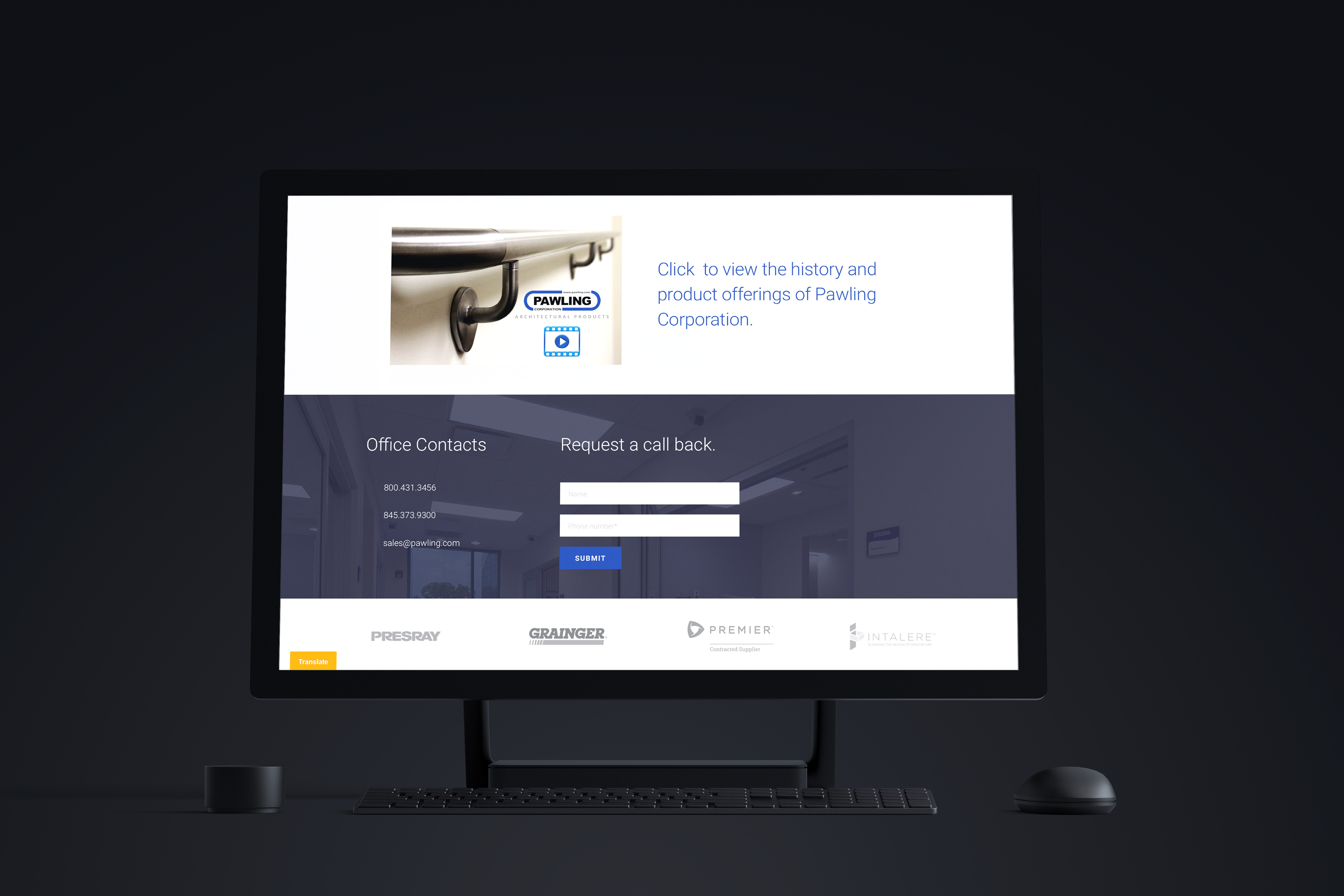 As the Pawling Corporation has grown and diversified, there is an increasing need for a site that can readily deliver to the customer a swift solution with a minimal number of clicks. Featuring the key members of the sales department on the home page means that customers can easily put a face to a name and be provided with simple access to contact information.