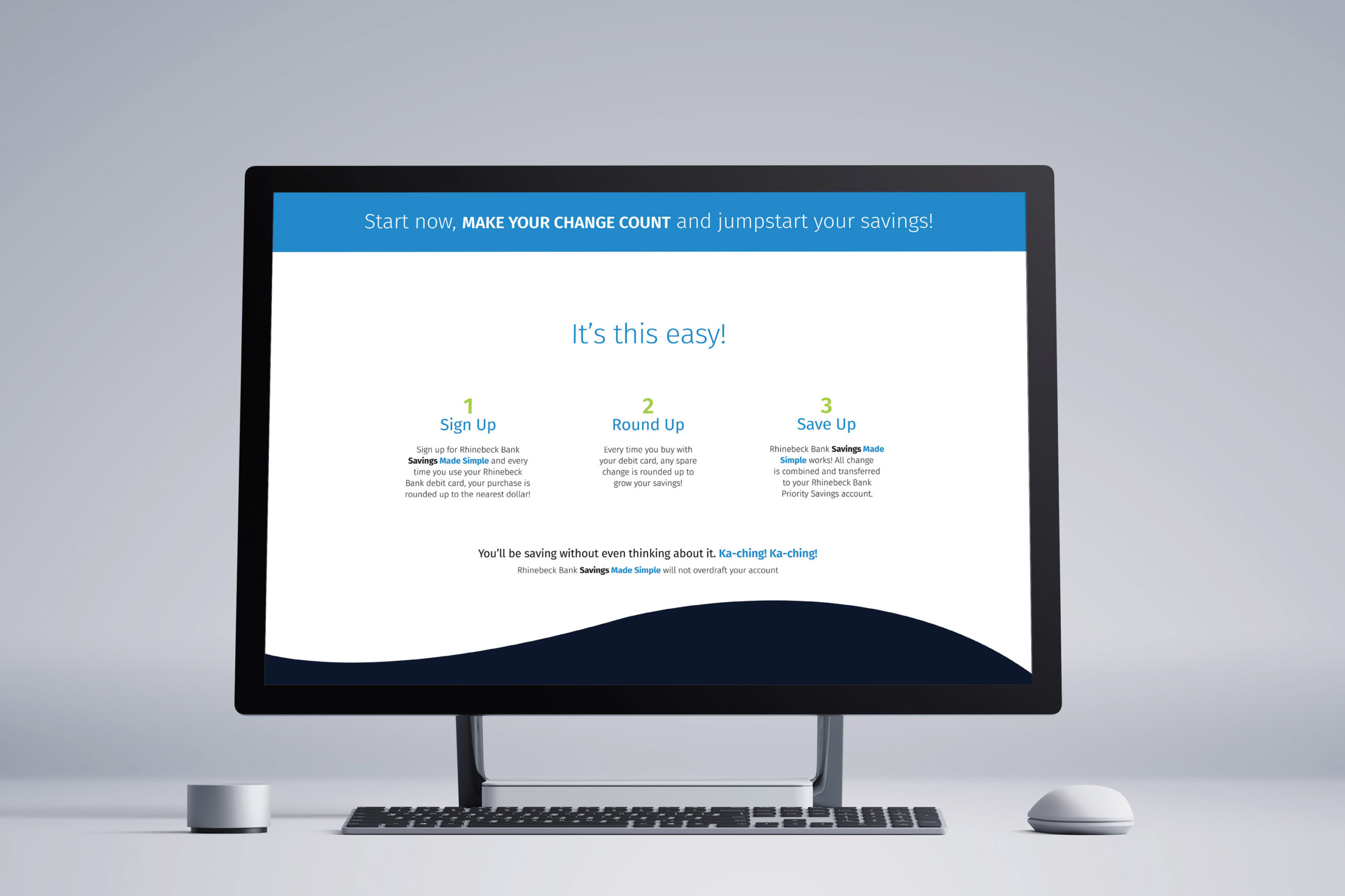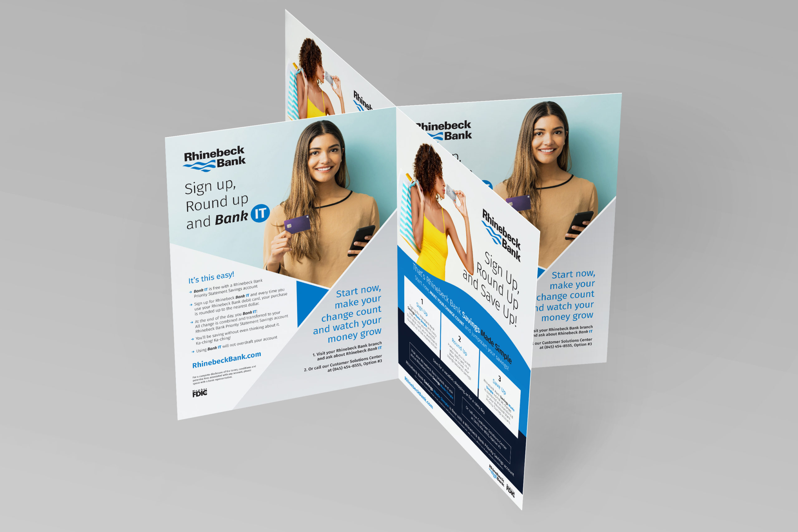Go Gladys designed a fun campaign to launch this popular service offered by Rhinebeck Bank in New York’s Hudson Valley. When customers sign up, any debit charge purchase is rounded up to the nearest dollar, with the difference being deposited into a savings account. We matched the simple name with a simple message: Sign Up, Round Up and Save Up!